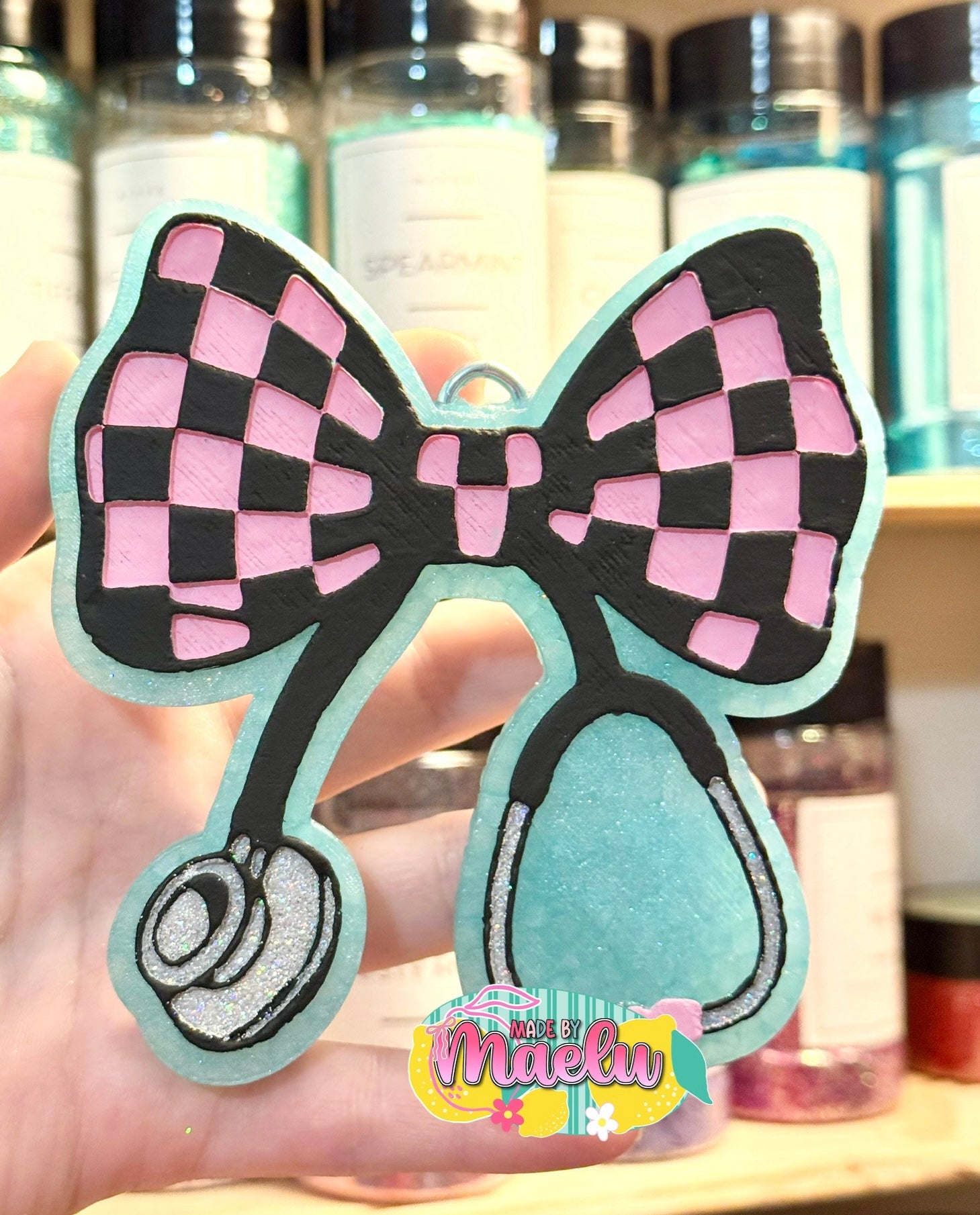 Checkered Bow Stethoscope Freshie Mold | silicone freshie mold