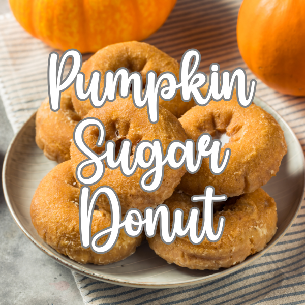 Freshly baked sweet glazed donuts combined with cozy pumpkin spices, topped with sugar crystals and a hint of cinnamon